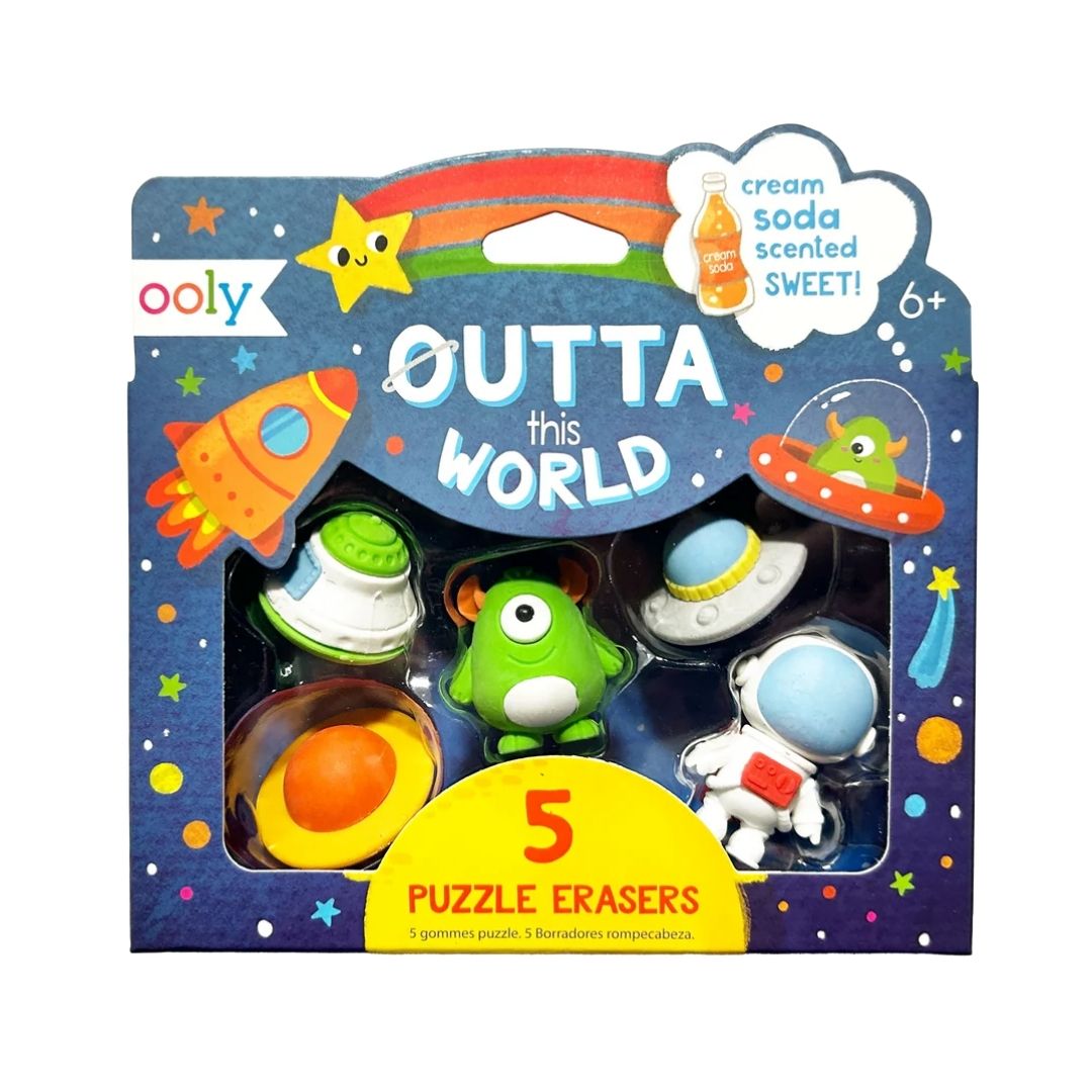 Tus tareas escolares despegarán con la ayuda de estos borradores de lápiz extraterrestres. Estos borradores espaciales te lanzarán a la diversión mientras corriges cada error. Cada uno de estos cinco borradores espaciales también tiene aroma a refresco de crema.