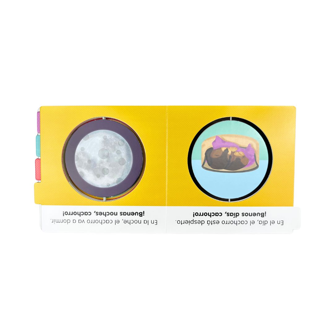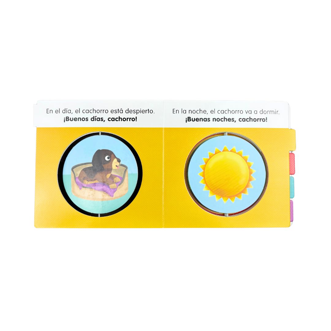 Descubre las rutinas de día y noche con Libro Giratorio Sobre el Día y La Noche. ¿Cuándo se despierta el cachorro? ¿Cuándo se va a dormir? Gira las imágenes y aprende sobre el ciclo del día y la noche de una manera divertida e interactiva.