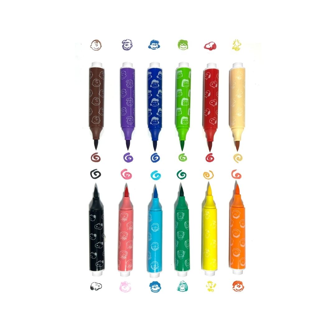 Marcadores con Doble Punta y Sellos OOLY x Peanuts (Set de 6 / 12 colores)