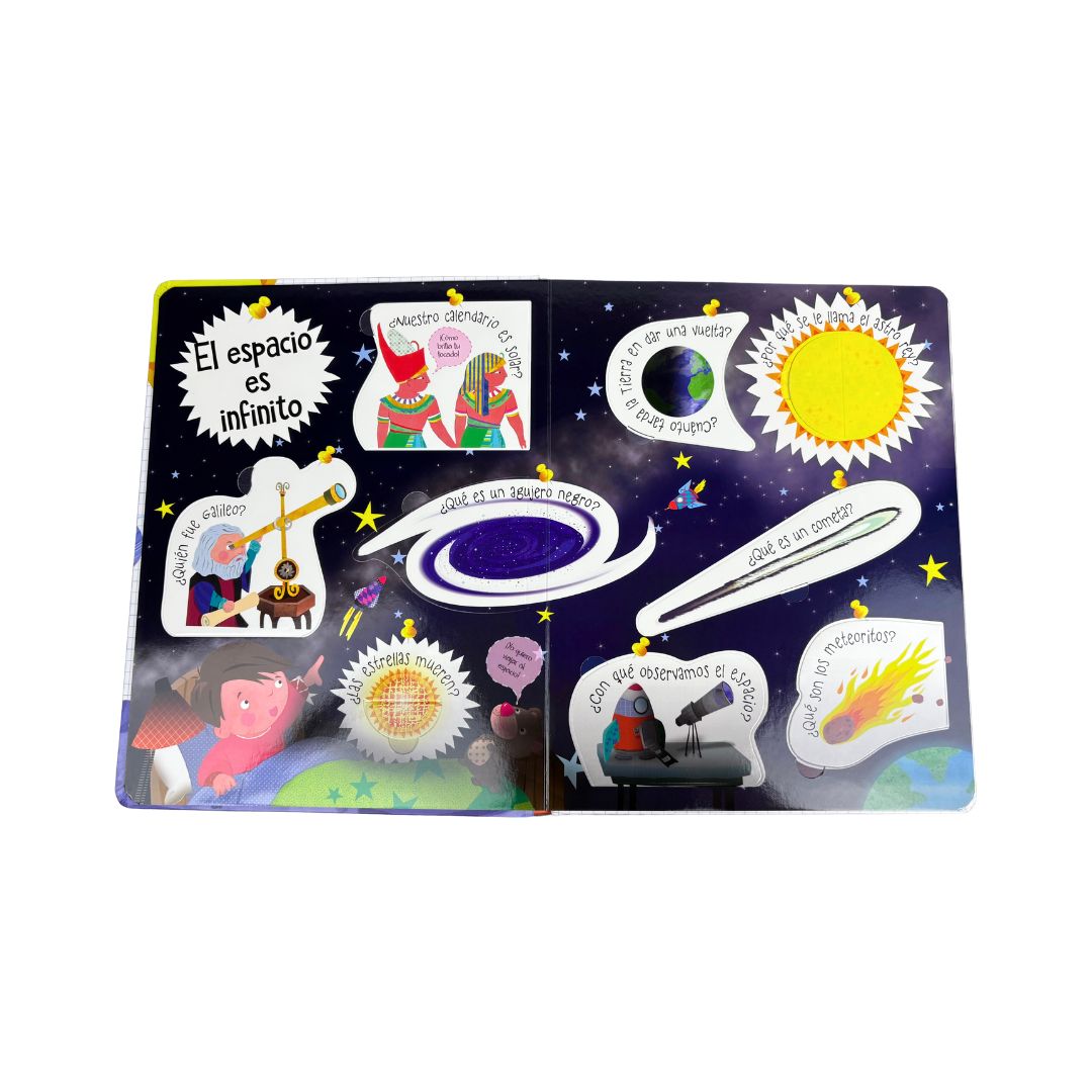 Levanta las solapas de este libro y encontrarás las respuestas a un montón de preguntas que seguro te has hecho alguna vez sobre el universo. Déjate sorprender y aprende qué es un agujero negro, cómo funciona un telescopio, por qué es azul la Tierra, y muchas cosas más. ¡Con más de 50 solapas para levantar!