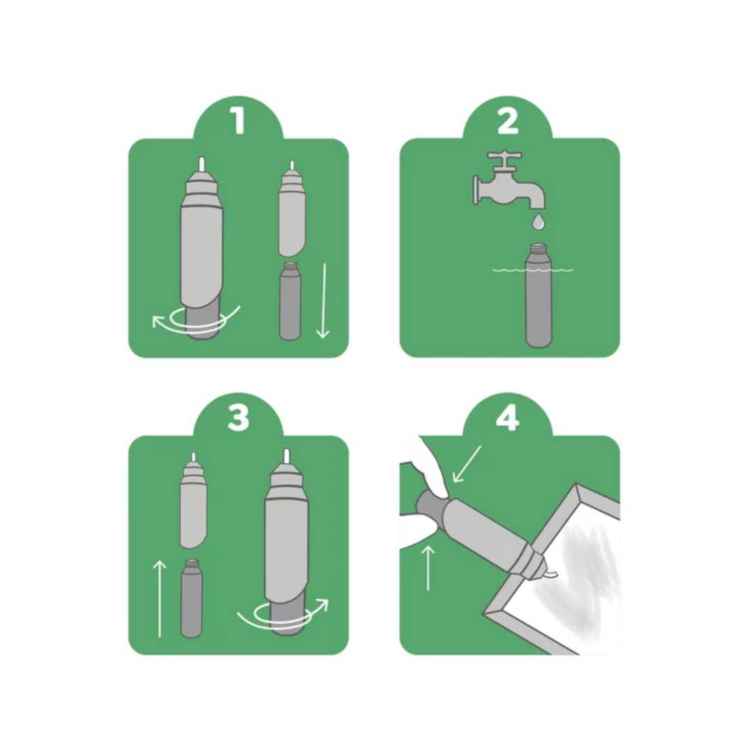 • El agua revela imágenes ocultas; una vez seca, las imágenes vuelven a desaparecer.