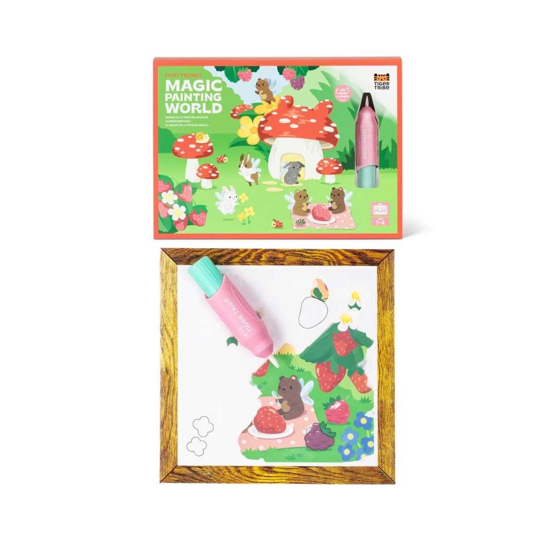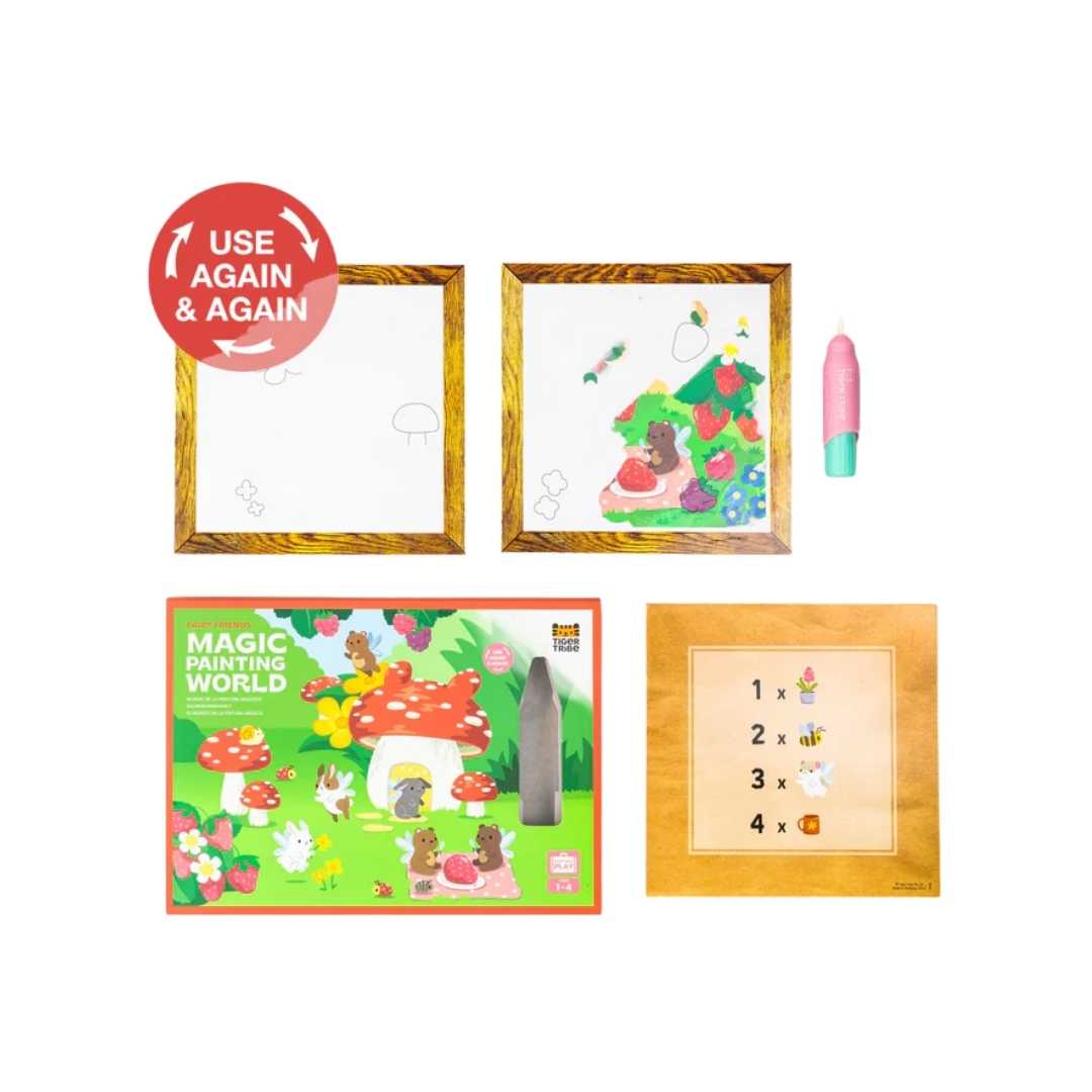 Mundo Mágico de Pintura es una introducción ideal a la pintura sin complicaciones para los más pequeños, donde las imágenes ocultas se revelan con el pincel mágico de agua recargable, de tamaño perfecto para sus manitas. Una vez seco, las escenas desaparecen para que los niños puedan jugar una y otra vez.