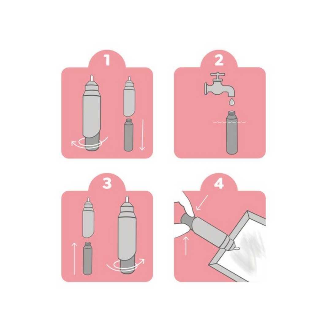 • El agua revela imágenes ocultas; una vez seca, las imágenes vuelven a desaparecer.