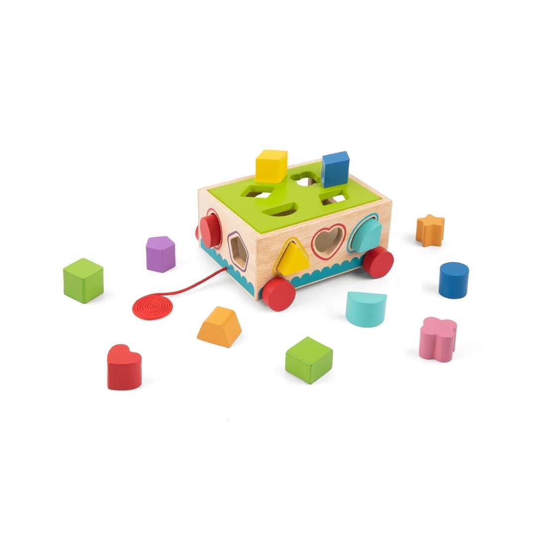 - Cada carrito clasificador de formas de madera está hecho de madera, con acabados de la más alta calidad y pintado con pintura no tóxica y segura para niños.