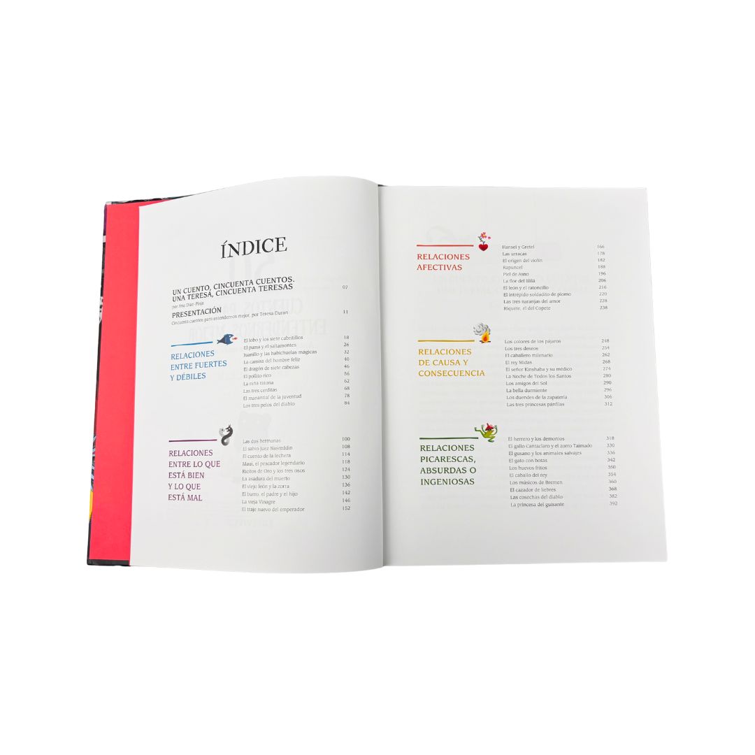 Este libro es un compendio de 50 cuentos tradicionales de diferentes épocas y lugares, narrados por la prestigiosa narradora e investigadora Teresa Durán. Dividido en cinco secciones según sus categorÃas temáticas, reúne cuentos populares y menos conocidos. Cada cuento está precedido por una introducción que lo vincula con temas, emociones y comportamientos que nos ayudan a comprender el mundo actual. Cincuenta cuentos de diferentes tipos y orÃgenes ayudarán a los lectores a comprender la realidad, ya sea leÃdos de forma independiente o compartidos con adultos.