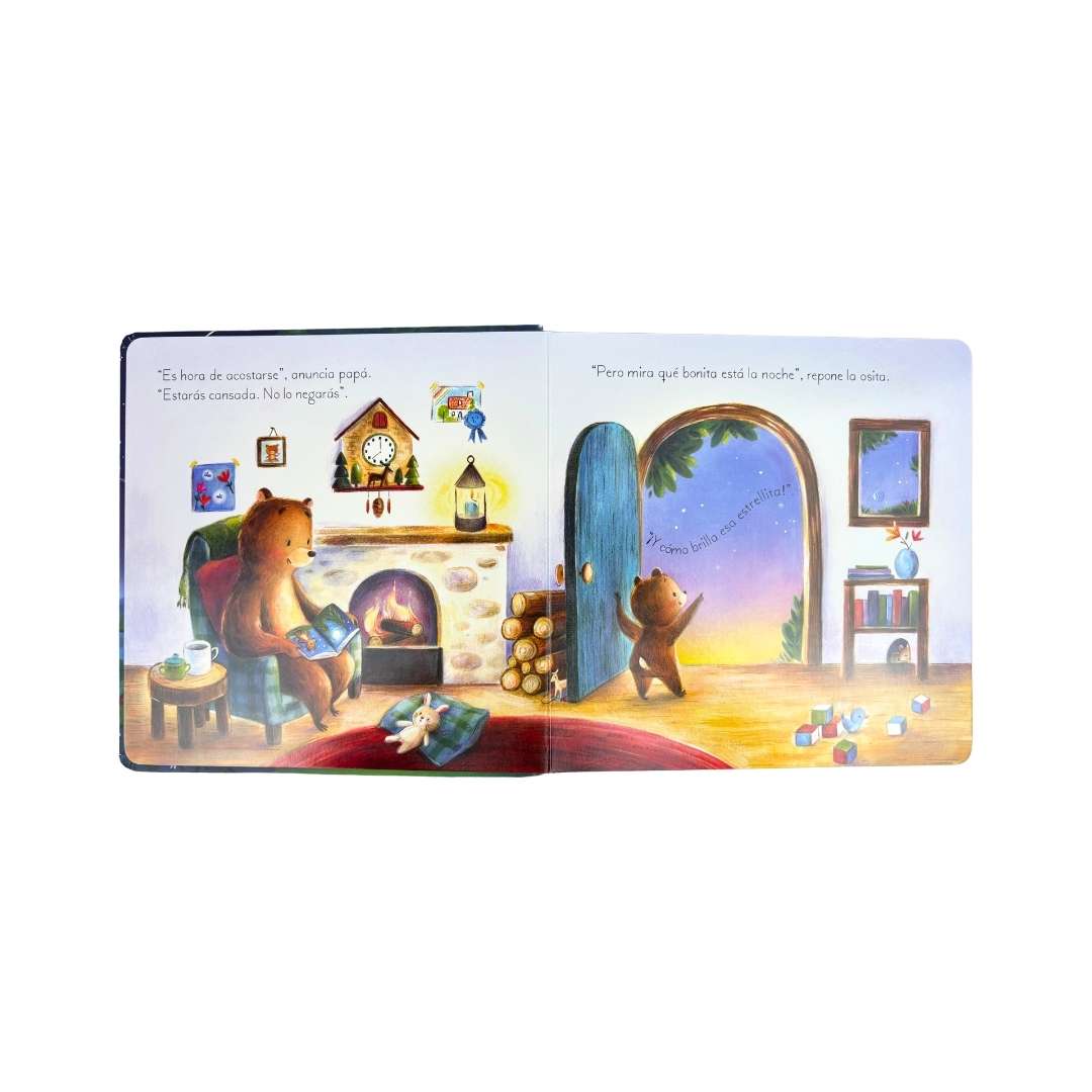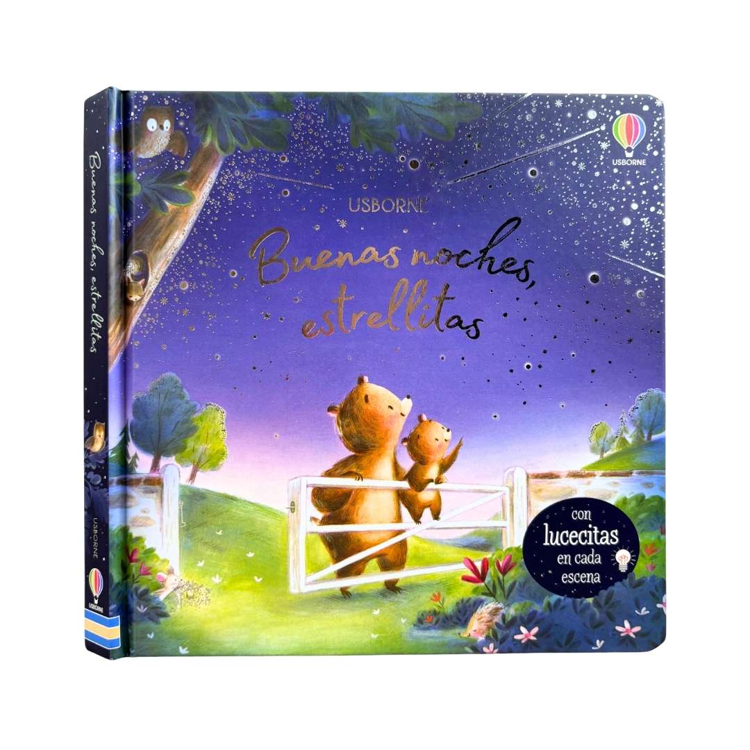 Es de noche y hay que irse a la cama… ¡Pero el pequeño osito no puede dejar de mirar el cielo estrellado! Este libro mágico tiene diez luces que los niños descubrirán mientras acompañan al osito y su papá durante un paseo nocturno antes de acostarse. Cada vez que pasen la página, verán más luces que brillan en el cielo,