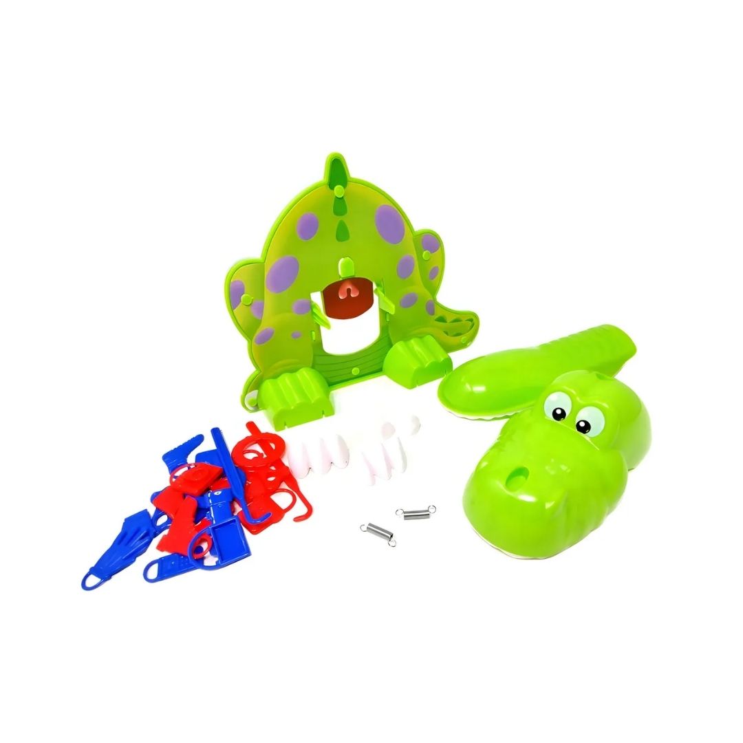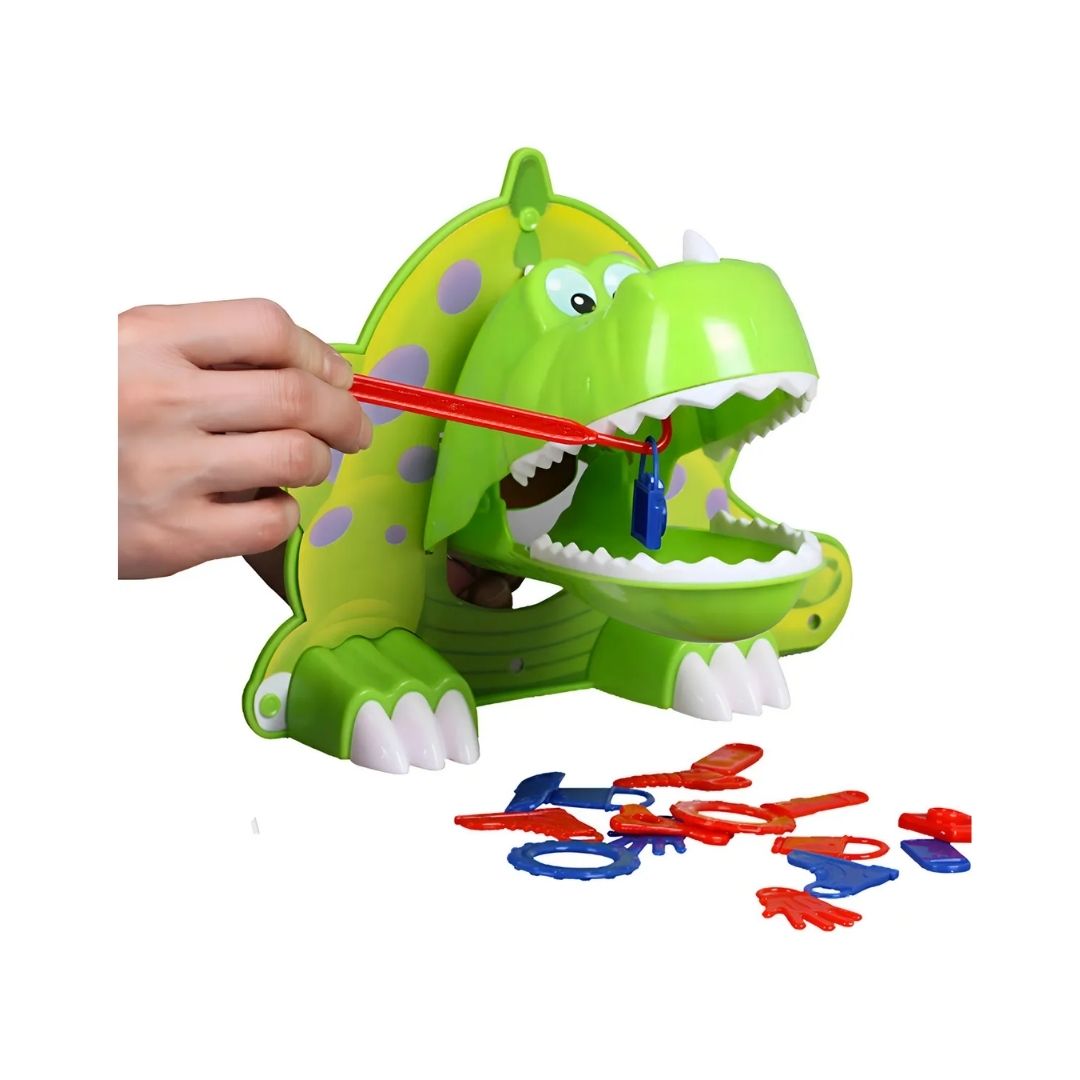 Embárcate en un emocionante juego donde debes quitar con cuidado los objetos de la boca del dinosaurio antes de que te muerda. Este juego de fiesta desafía a los jugadores a usar el gancho proporcionado para extraer los objetos sin tocar los dientes del dino. Si la mandíbula del dino se cierra, pierdes. El primer jugador en eliminar con éxito 5 objetos gana. Adecuado para mayores de 4 años,