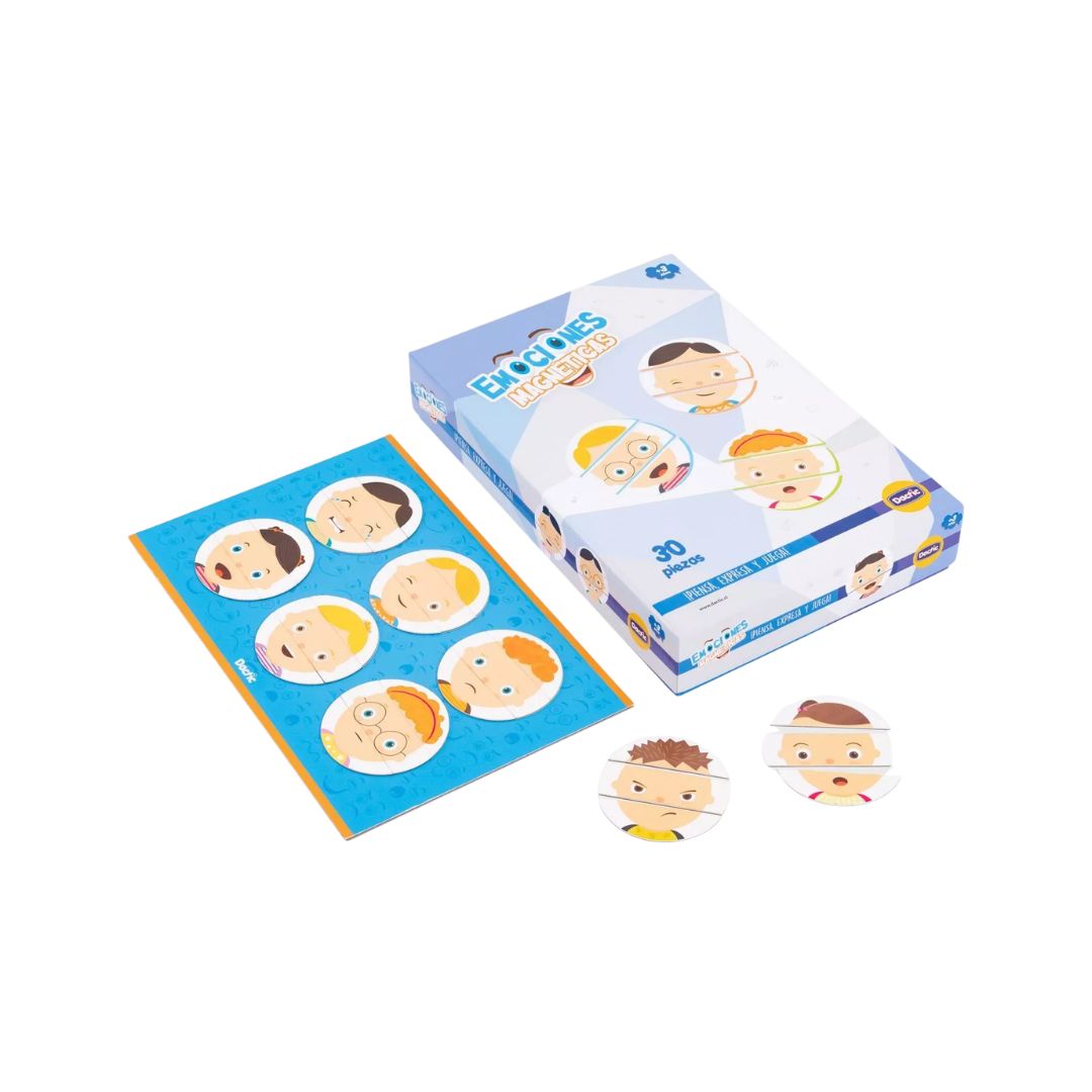- Contiene 1 tablero más 30 piezas imantadas de xcaritas de emociones