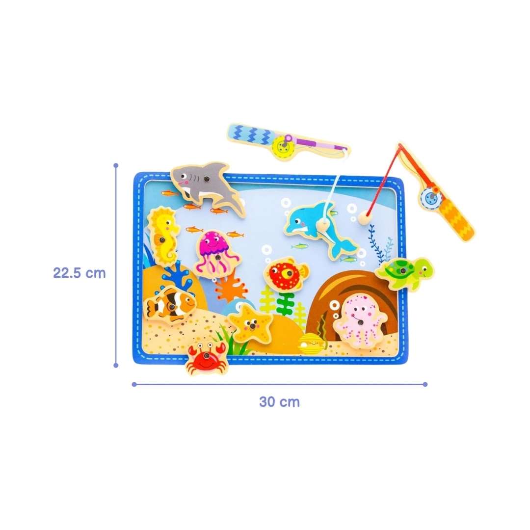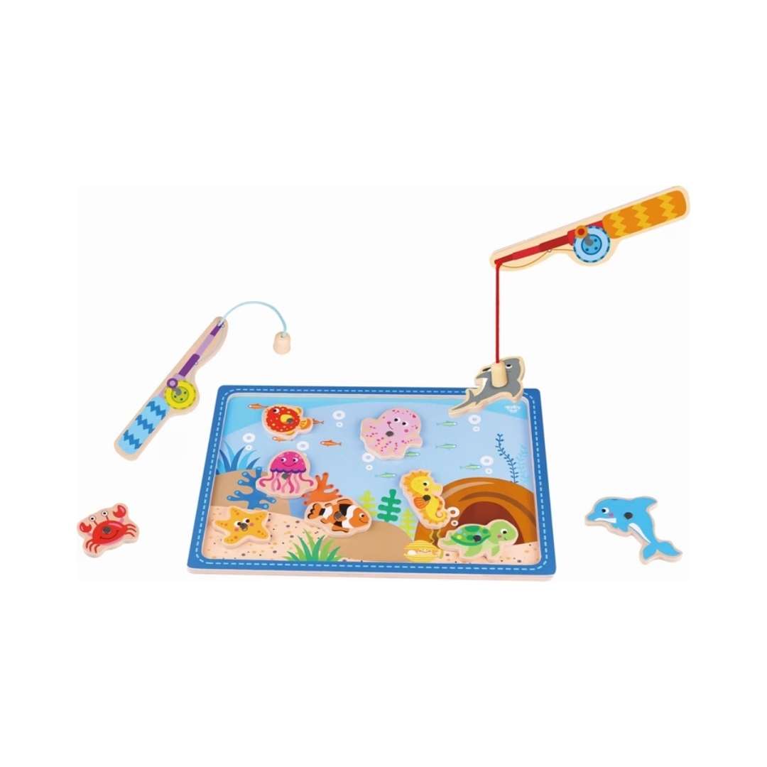 ¿Quién puede atrapar más criaturas marinas con la caña de pescar magnética? Este clásico juego de pesca desarrolla la motricidad fina y la concentración de tus peques.
