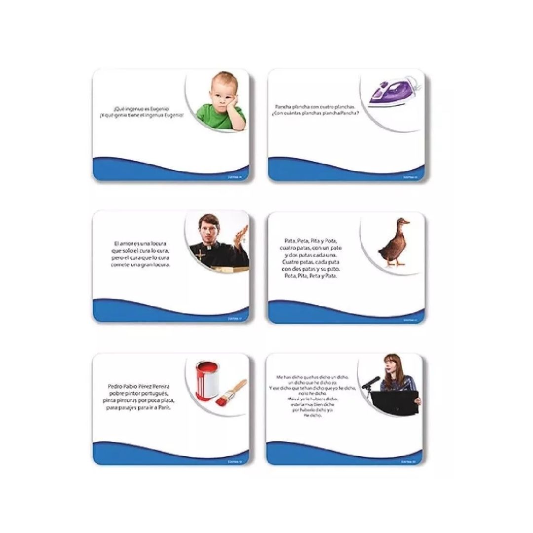 ¡Pon a prueba tu lengua y tu mente! Este set de tarjetas de DACTIC es una herramienta lúdica diseñada para mejorar la pronunciación y la velocidad de procesamiento lingüÃstico. A través de rimas y juegos de palabras, los niños pueden perfeccionar su dicción de la manera más entretenida posible.