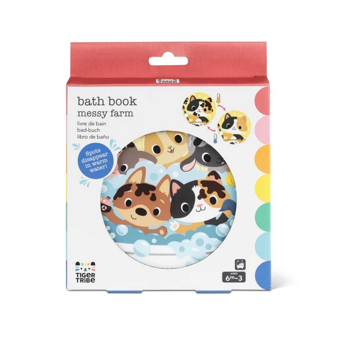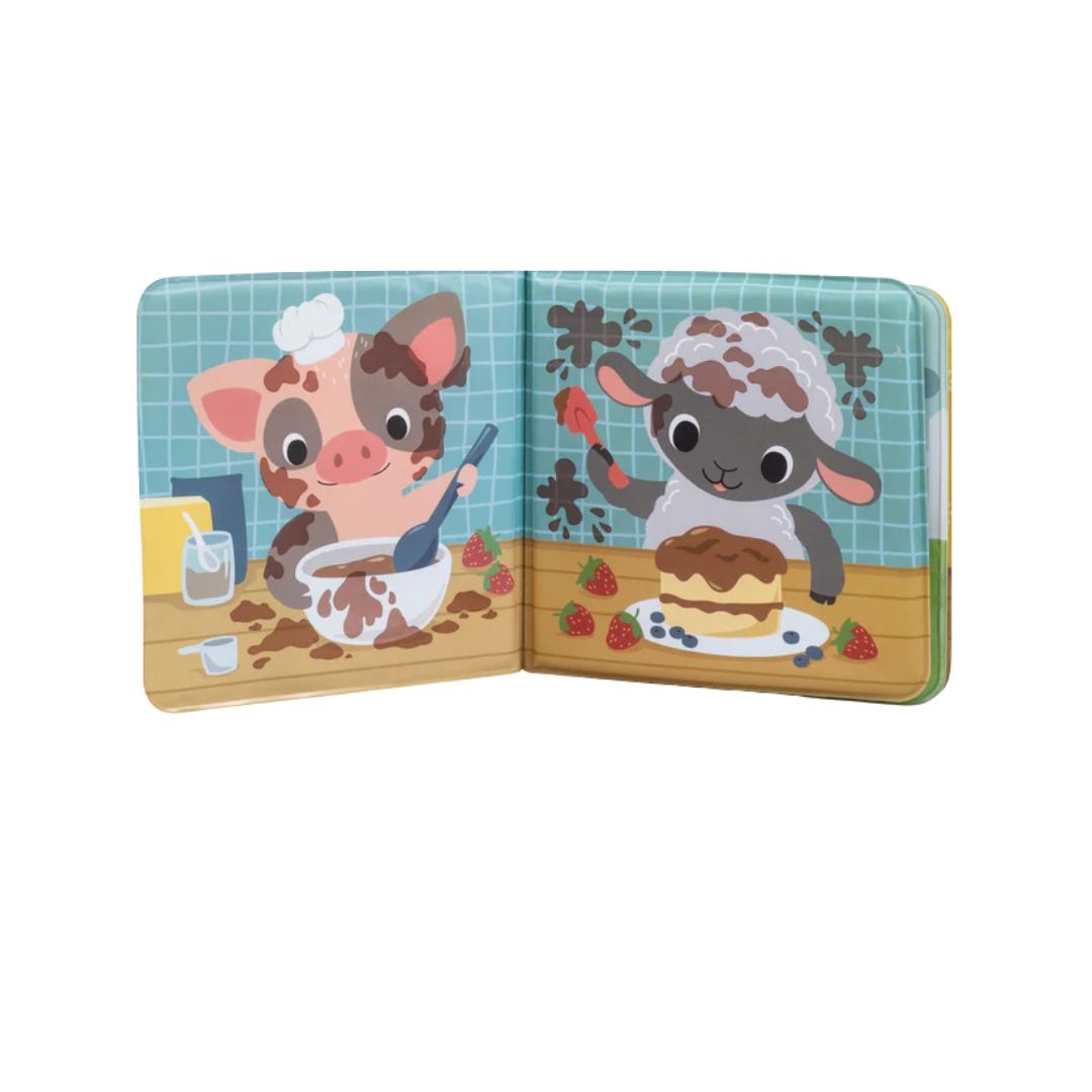 - Lindo libro de baño ilustrado con 'barro' mágico sobre animales con temática de granja