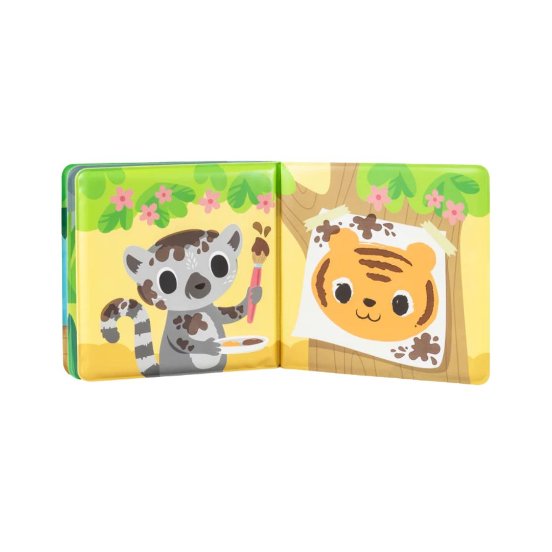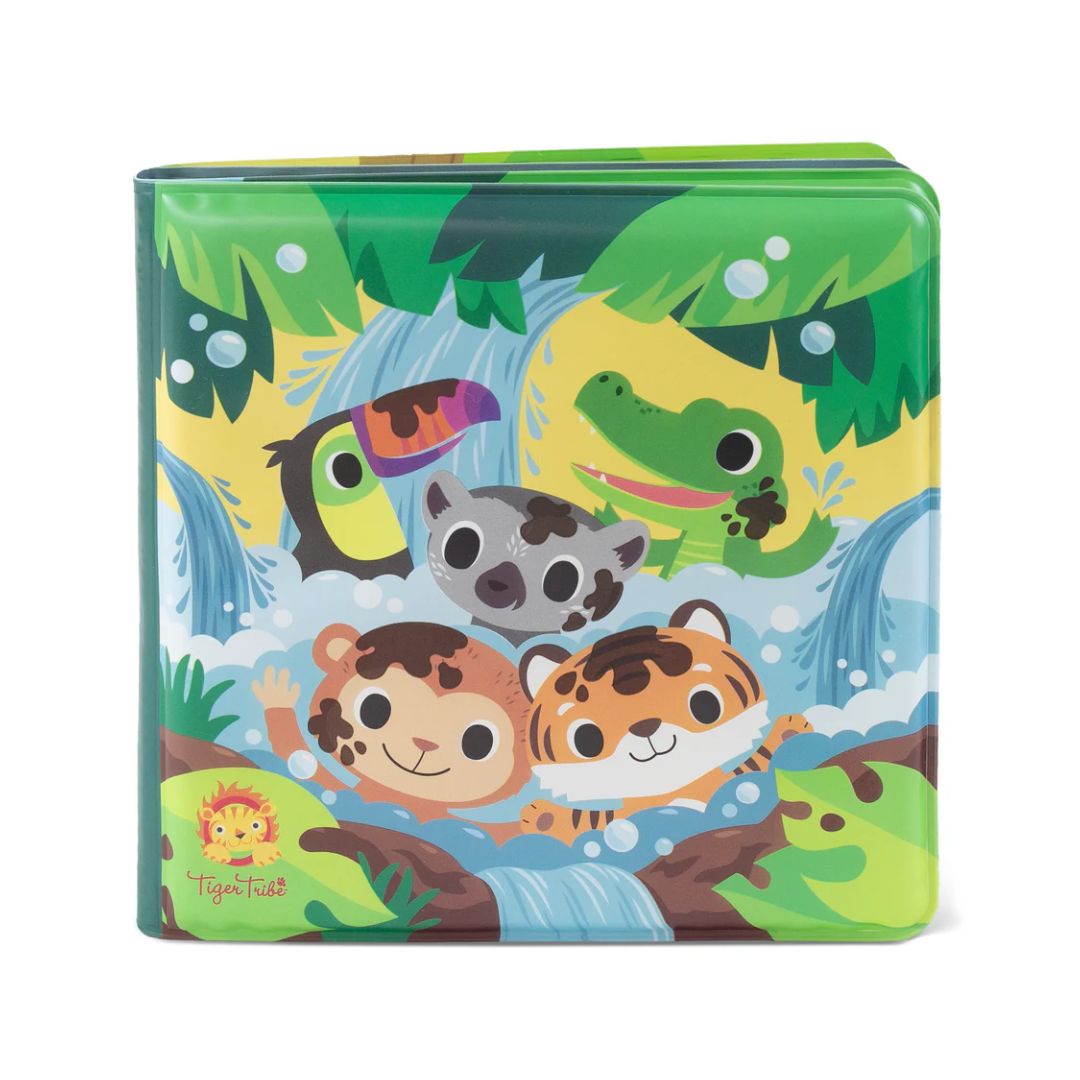 • Lindo libro de baño ilustrado con 'barro' mágico sobre animales con temática de la jungla