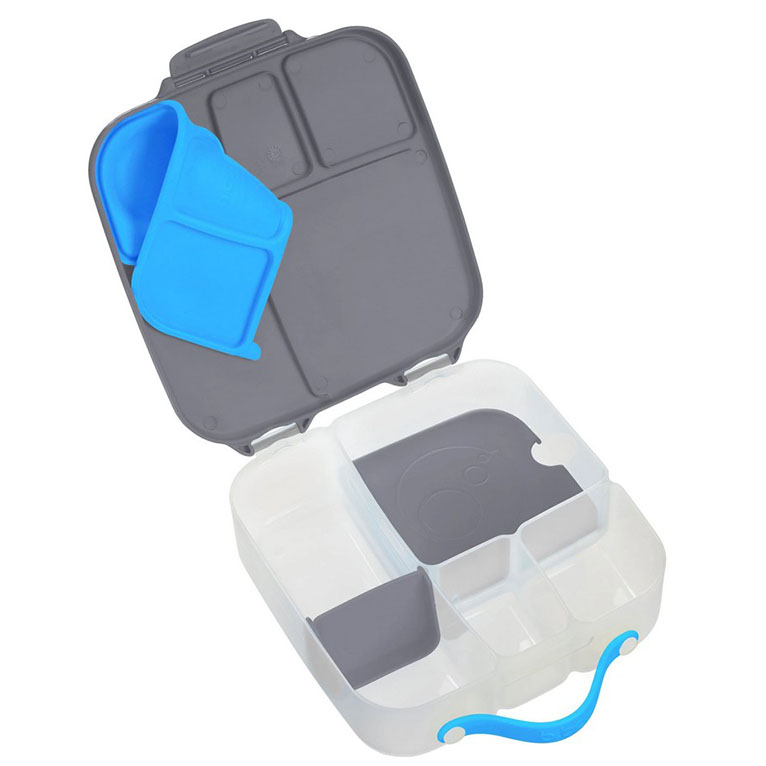El divisor personalizado se desliza permitiendo a los padres ajustar el tamaño del compartimiento según lo necesiten. Además, debajo de la bandeja se incluye un paquete enfriador de gel para mantener los alimentos frescos por más tiempo. Su exclusivo soporte flexible para frutas enteras le permite almacenar una manzana entera. Los sellos de silicona a prueba de fugas le permiten almacenar alimentos húmedos sin que se derramen.