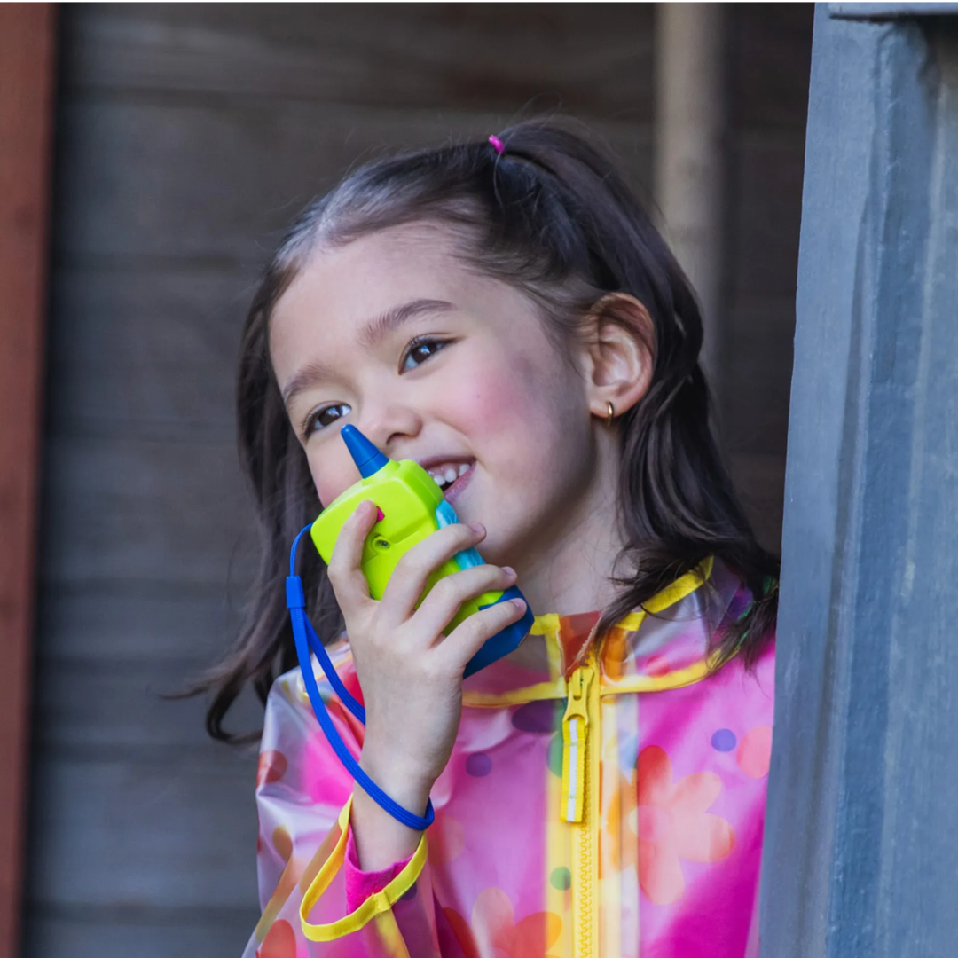 Con solo un botón y un canal de radio seguro de niño a niño, estos mini walkie talkies permiten a los jóvenes exploradores mantenerse en contacto de forma segura por sà solos.