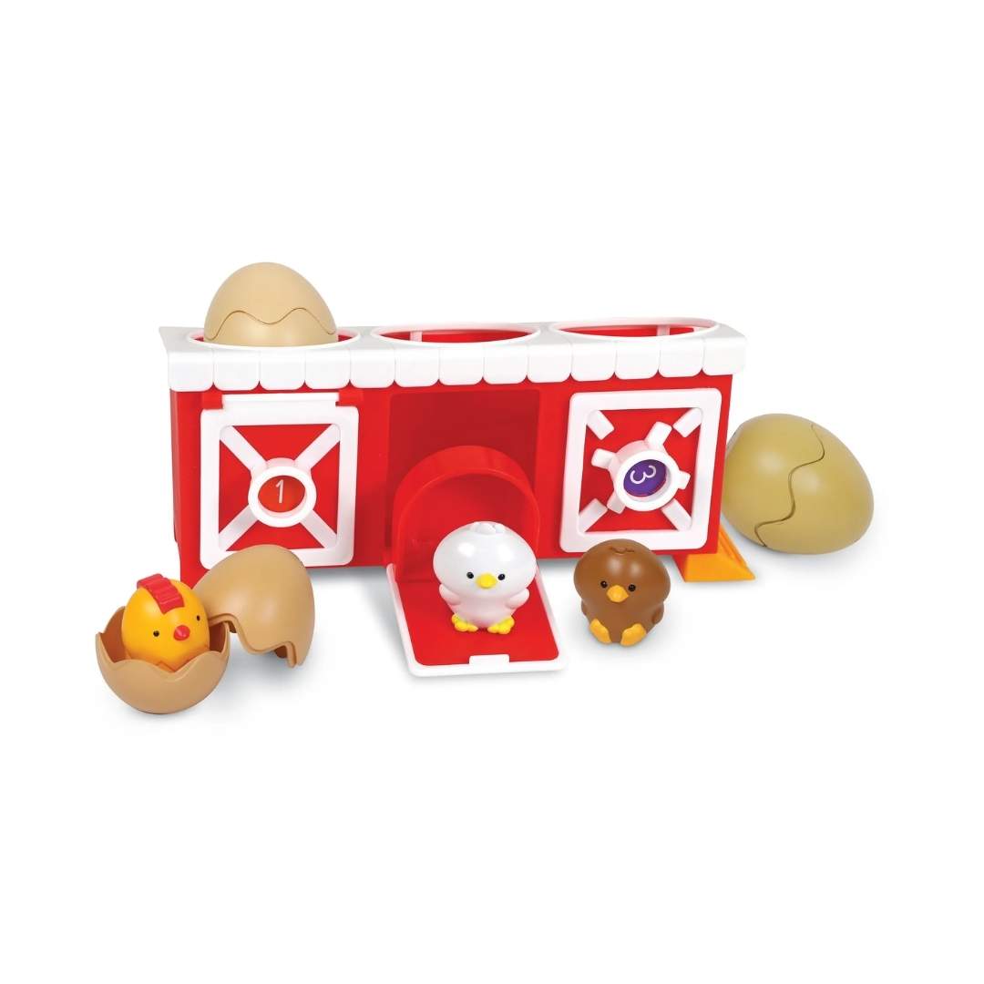 ¡Este set de aprendizaje de Peeksville es para alardear! ¡AmplÃa tu aventura de la granja con este gallinero que esconde una sorpresa detrás de cada puerta! Observa cómo desaparece la gallina o el huevo al colocarlos en el gallinero; luego, levanta, tira y gira las puertas para revelarlos de nuevo. Con un tamaño ideal para las manitas de los más pequeños, cada huevo de dos piezas se separa para desarrollar la motricidad fina y descubrir una gallina en su interior. A partir de 18 meses.