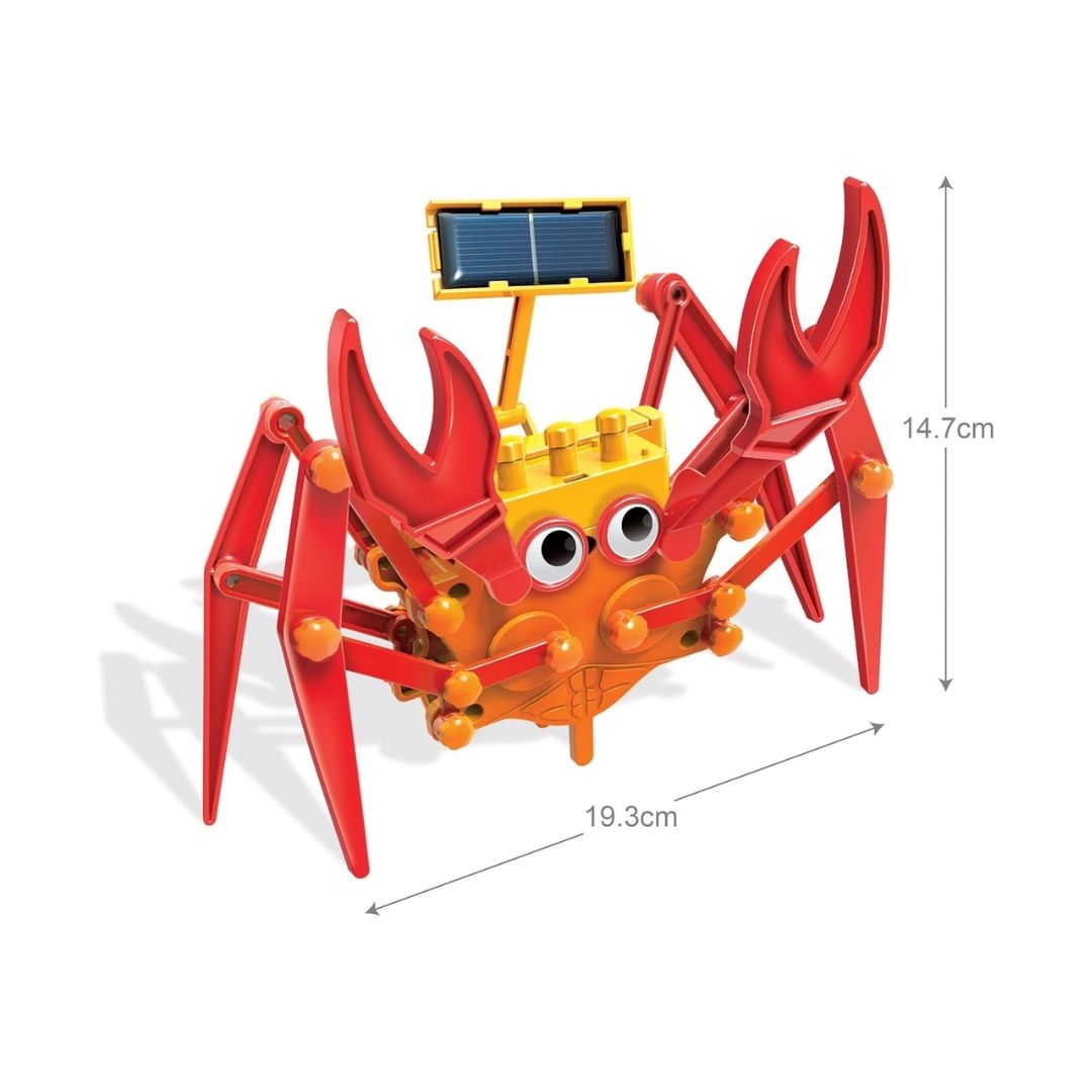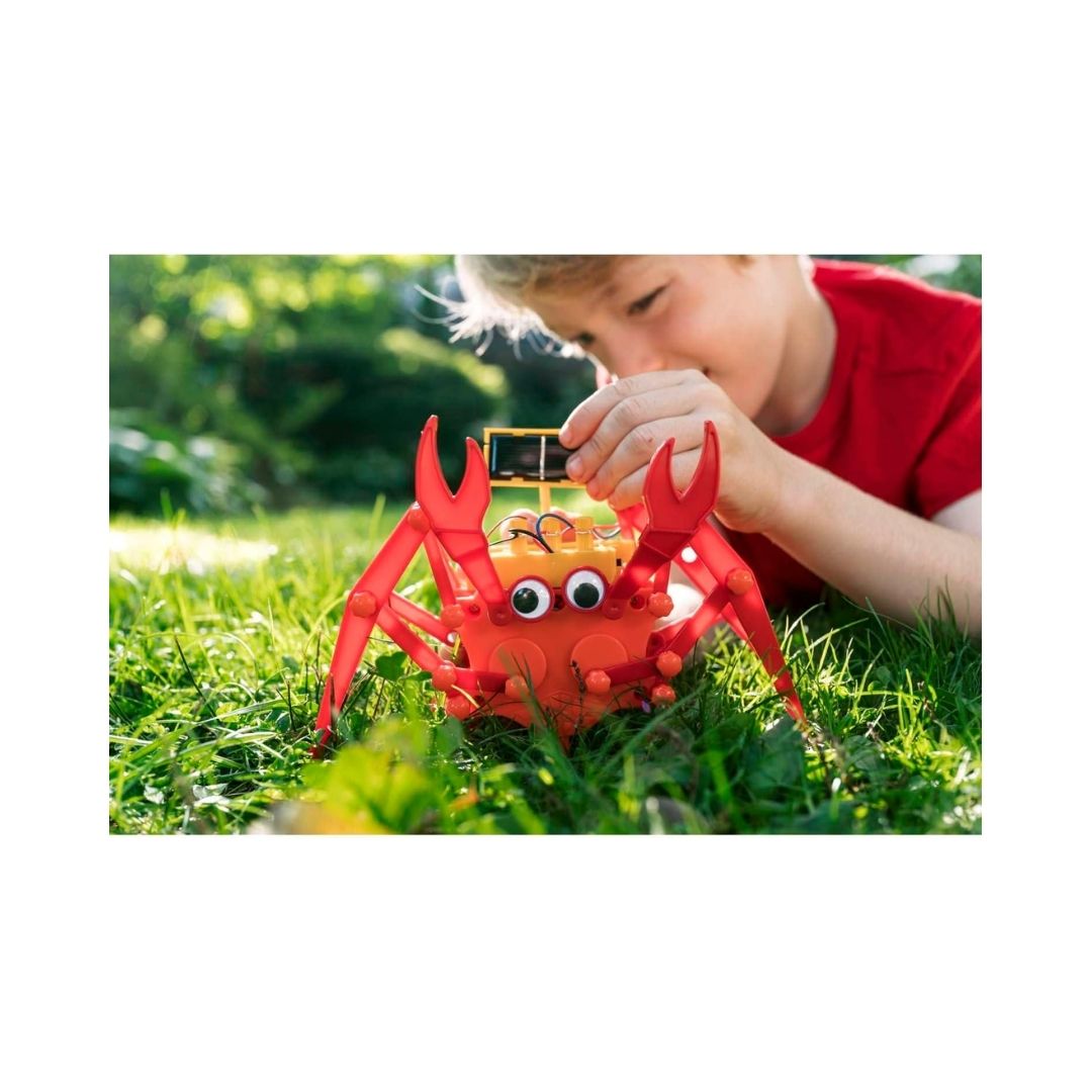 ¡Lleva la robótica a la playa (o a tu sala)! Con el Robot Cangrejo, los niños construyen un robot cangrejo que se desplaza de forma lateral, igual que uno de verdad. Gracias a su motor hÃbrido, este pequeño crustáceo mecánico puede funcionar con la energÃa limpia del sol o con una baterÃa para seguir la diversión en interiores.