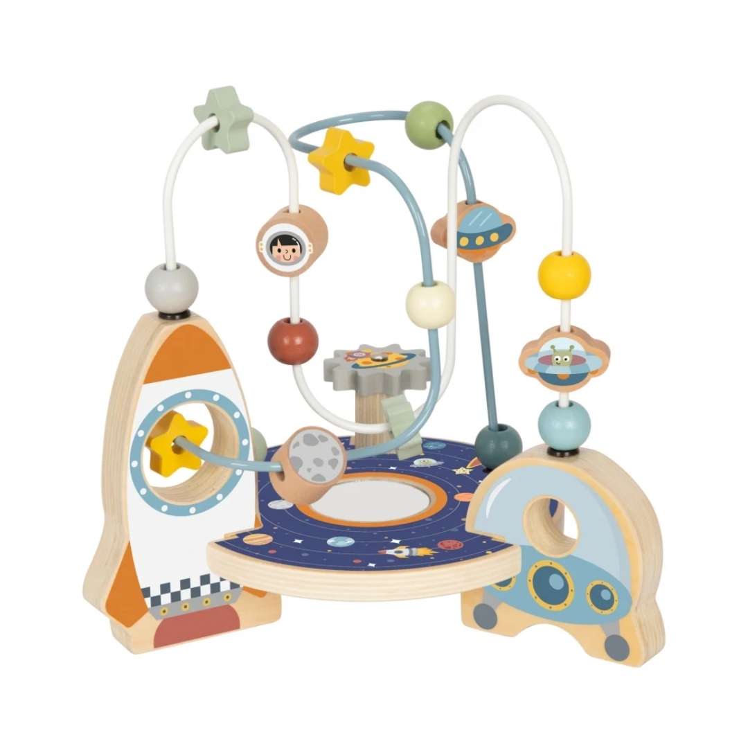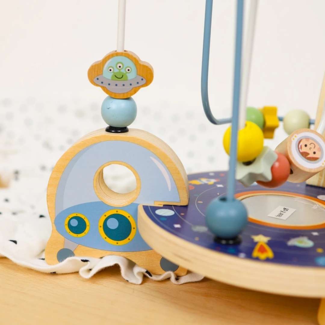 Los planetas, las estrellas y los cohetes estimulan la imaginación de los niños y convierten el ejercicio motor en un viaje aventurero a través del espacio.