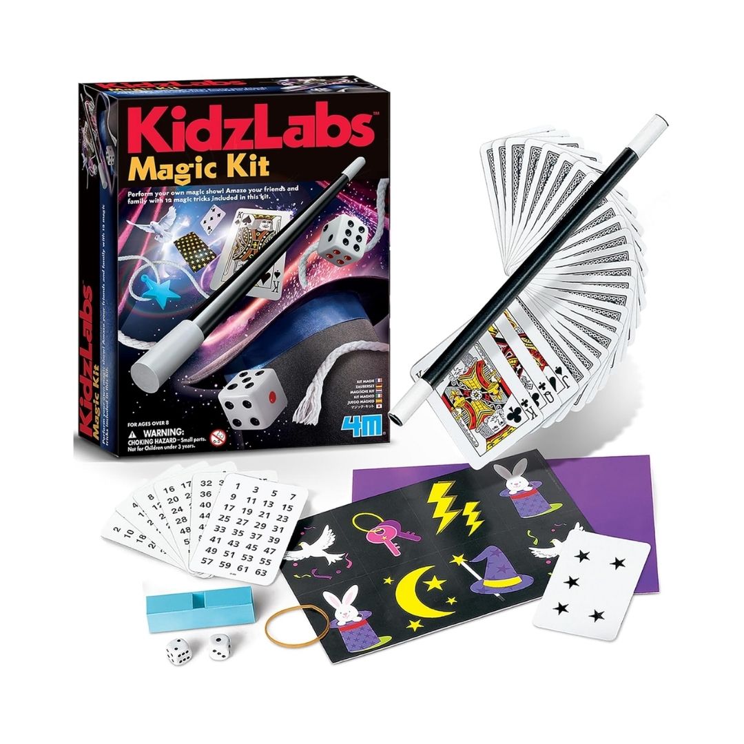 ¿Estás listo para dejar a todos con la boca abierta? El kit de magia es la herramienta definitiva para que los futuros ilusionistas den sus primeros pasos. Con este set, el misterio y la ciencia se dan la mano para crear momentos inolvidables frente a familiares y amigos.