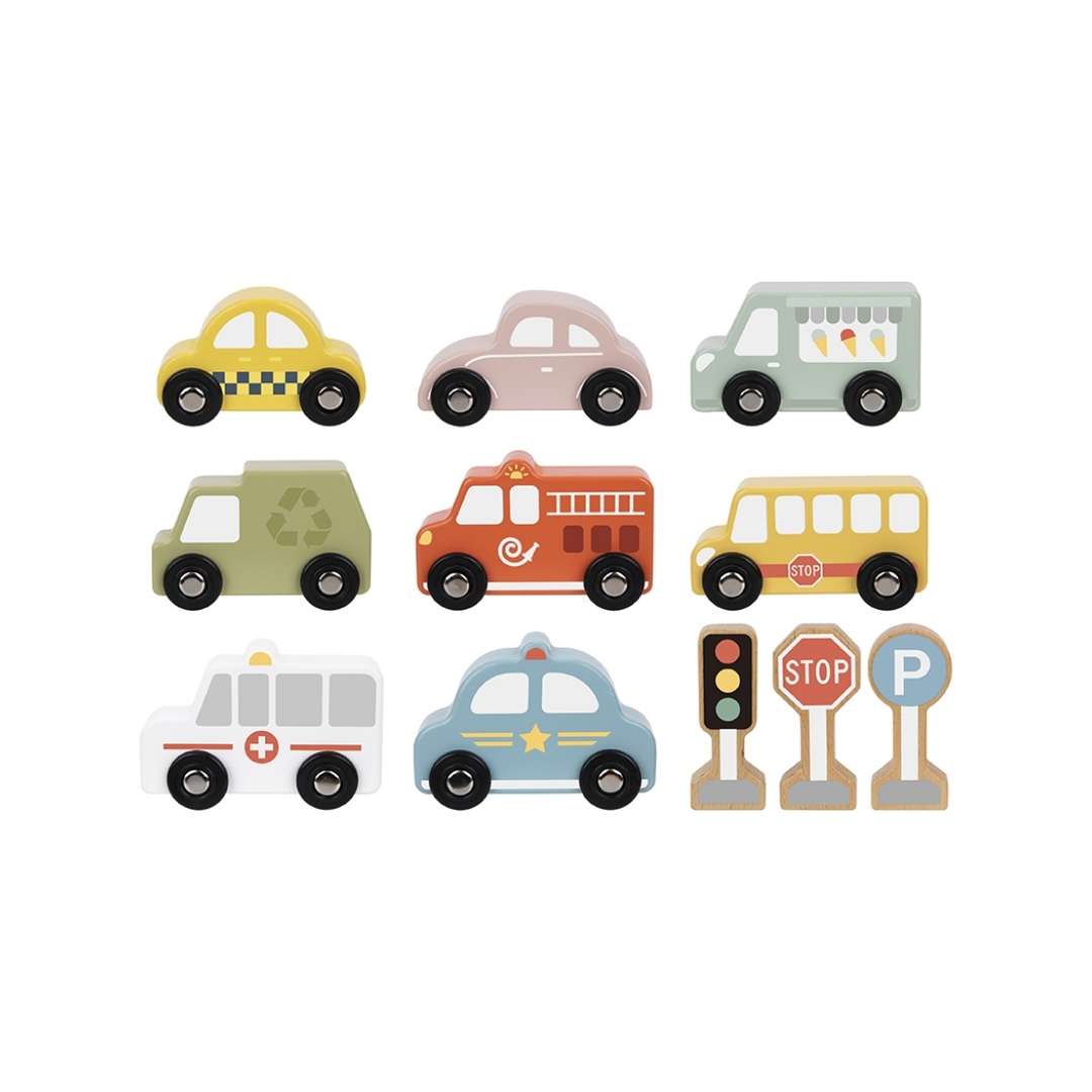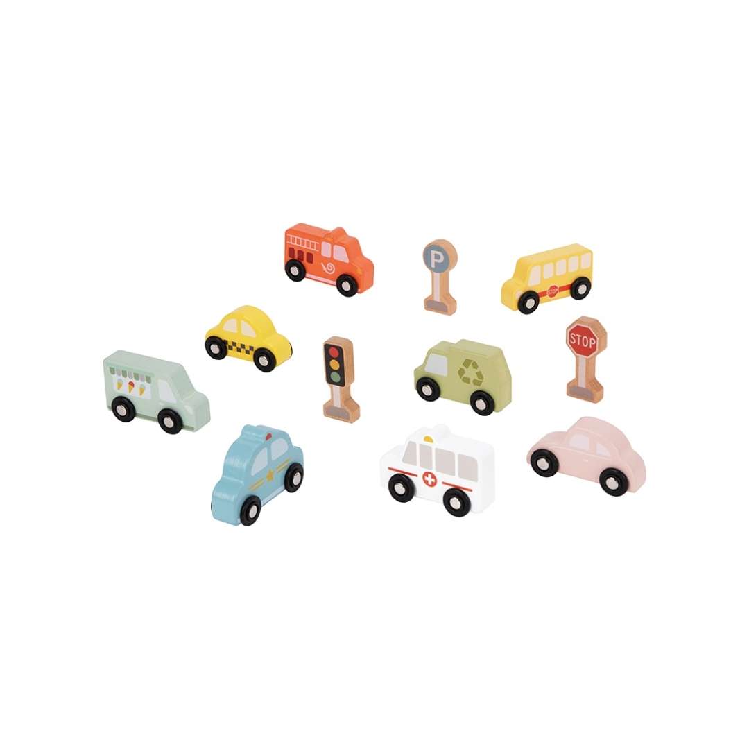 Sumérgete en el encantador mundo de los juguetes de madera con el set de coches de madera. Esta exquisita colección incluye ocho coches de intrincado diseño y tres señales de tráfico, meticulosamente elaborados para inspirar el juego imaginativo y la creatividad.